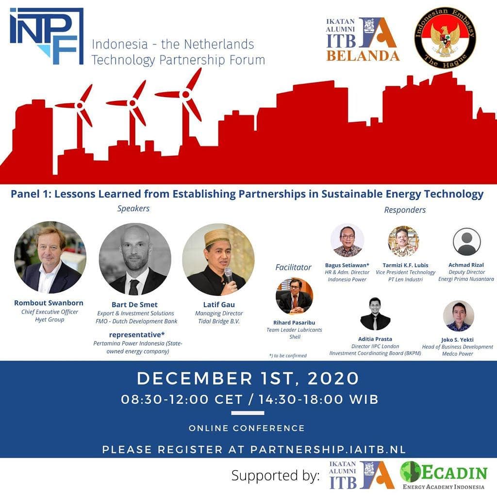 Bandung Institute of Technology Alumni Network – Netherlands Chapter (IA-ITB Netherlands), with the Embassy of the Republic of Indonesia in The Hague and Energy Academy Indonesia (ECADIN) would like to invite you to the upcoming event of *Indonesia – the Netherlands Technology Partnership Forum (INTPF) Symposium*.