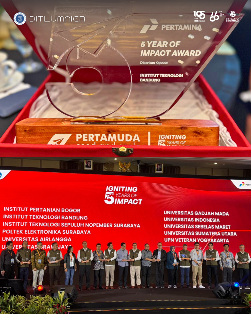 Institut Teknologi Bandung (ITB) menerima penghargaan 5 Years of Impact Award dari Pertamina dalam peluncuran program Pertamina Goes To Campus (PGTC) 2025 yang digelar di Grha Pertamina, Jakarta. Penghargaan ini diberikan kepada 11 perguruan tinggi yang secara konsisten melahirkan finalis TOP 3 dalam ajang Pertamuda Seed and Scale sepanjang 2021–2024.