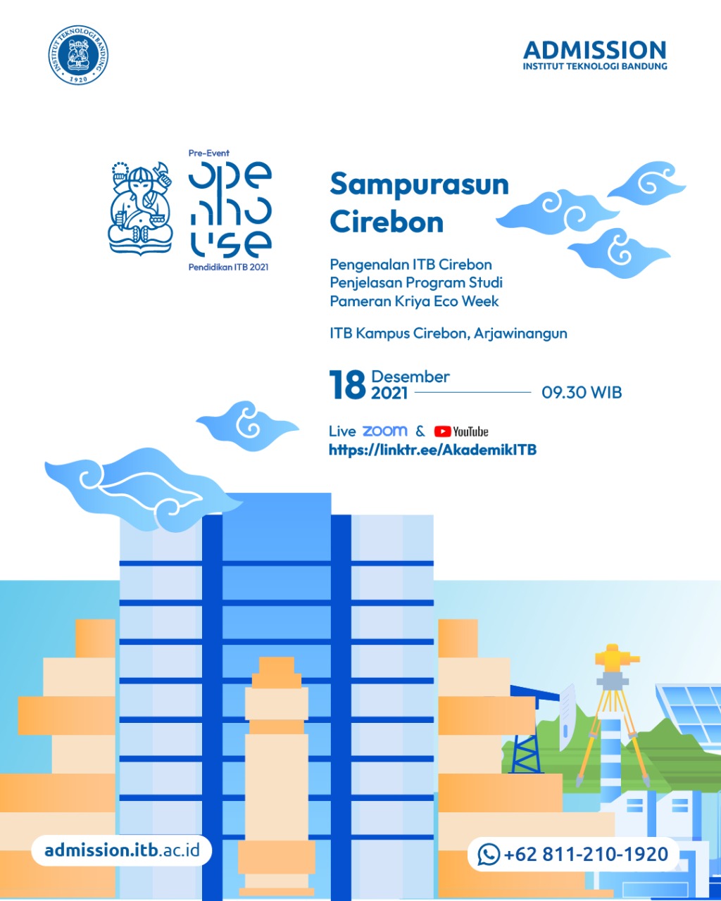 Dalam rangkaian acara untuk mengenalkan ITB multikampus, akan diadakan kegiatan Pameran ECOWEEK ITB 2021. Kegiatan pameran ini diselenggarakan untuk mengenalkan prodi Kriya ITB dan sebagai langkah awal dalam membuka ekosistem kreatif baru di daerah Cirebon dan sekitarnya. Bersamaan dengan Pameran ECOWEEK ITB 2021 juga dilaksanakan pre-event Open House ITB 2022 dengan mengenalkan 7 prodi yang ada di ITB Kampus Cirebon.