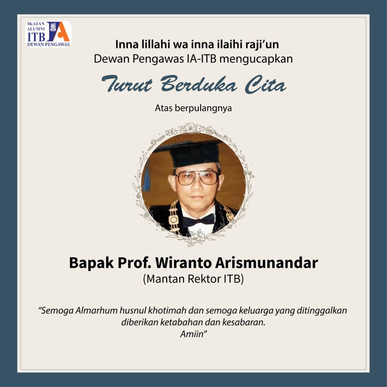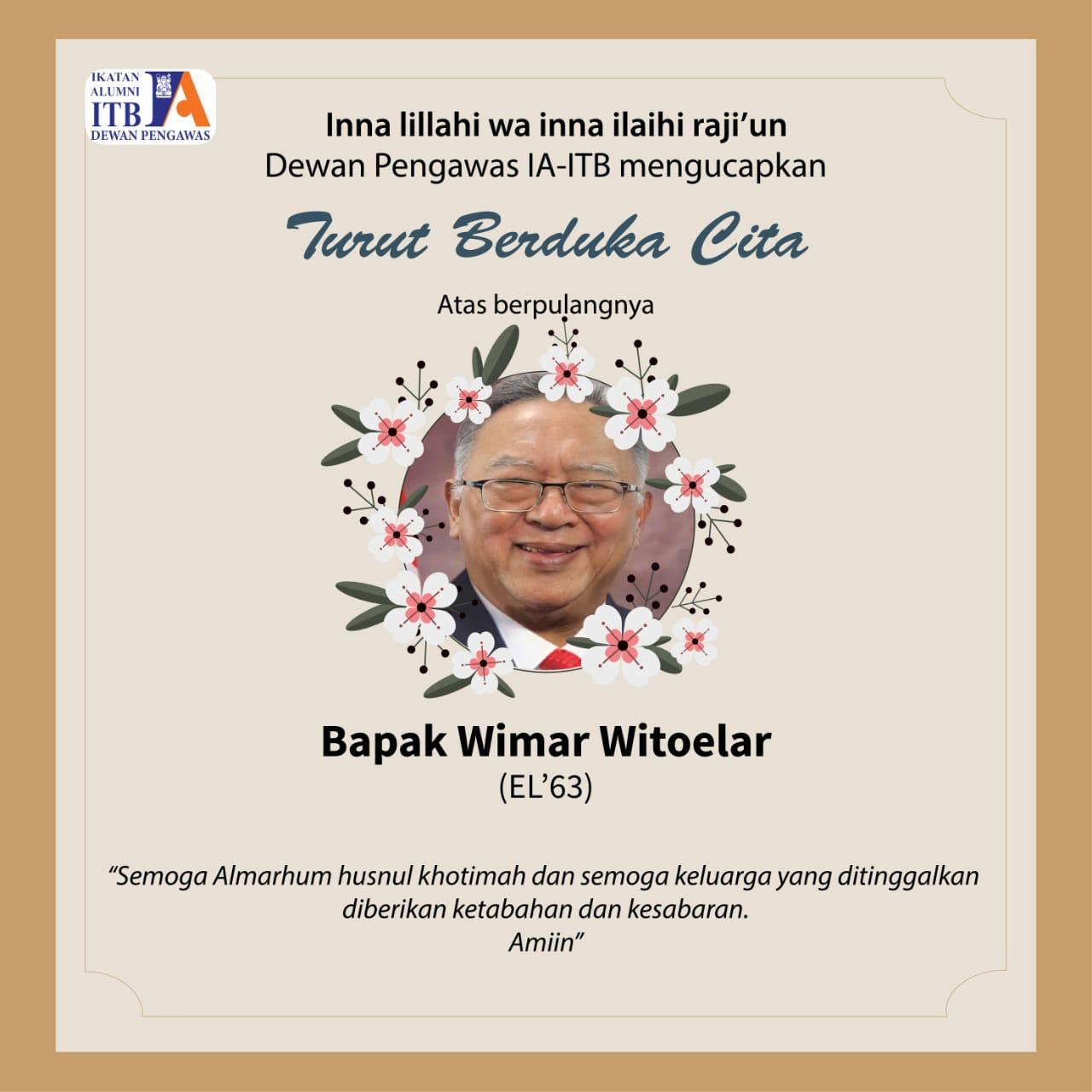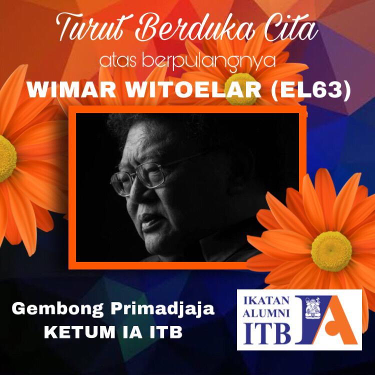 Saya Gembong Primadjaja, Ketua Umum Ikatan Alumni ITB dan Pengurus Pusat IA ITB, mengucapkan turut berduka cita atas wafatnya Pak Wimar Witoelar Kartaadipoetra dan Pak Prof. Ir. Wiranto Arismunandar, MSME.
