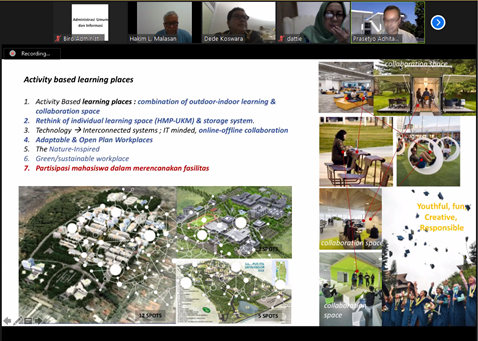 Presented by the Director of Student Affairs ITB, Dr. G. Prasetyo Adhitama S.Sn ,. M.Sn., making facilities / gathering places to study, discuss, collaborate, with complete facilities (co-working space) is one of the potential for cooperation besides scholarship and internship programs. It becomes interesting, because this co-working space can be a partnership that has “legacy” values. By involving students in designing and designing, it is hoped that the campus atmosphere will be more lively on the three campuses, namely Ganesha, Jatinangor, and Cirebon.