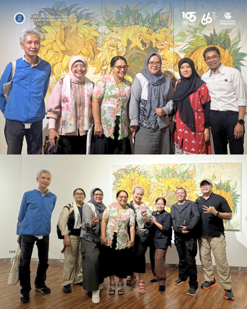 The exhibition was inaugurated by Prof. Dr. Irwan Meilano, S.T., M.Sc., Vice Rector for Academic and Student Affairs at ITB, and attended by key figures including Dr. Kahfiati Kahdar, M.A. (Dean of FSRD ITB) and Prof. Dr. rer. nat. apt. Sophi Damayanti, S.Si., M.Si. (Director of Alumni Affairs and Career Development).