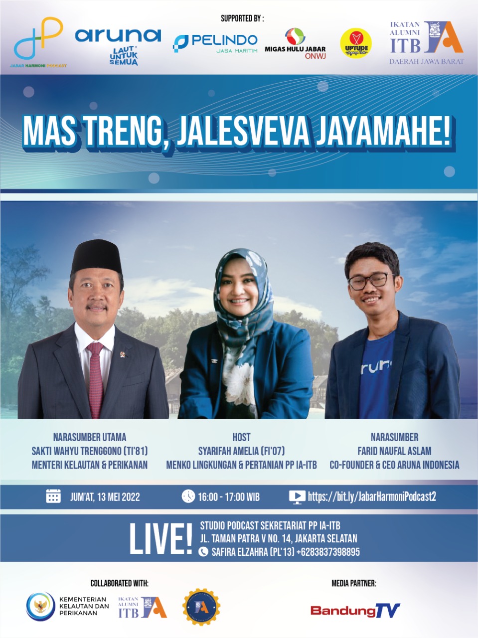 Sebagai upaya penyediaan wahana diskursus publik baru yang turut serta mencerdaskan kehidupan berbangsa, IA-ITB Pengurus Daerah Jawa Barat berkolaborasi dengan Kementerian Kelautan & Perikanan dan Pengurus Pusat IA-ITB mempersembahkan :