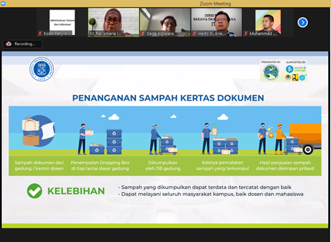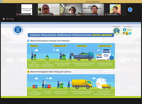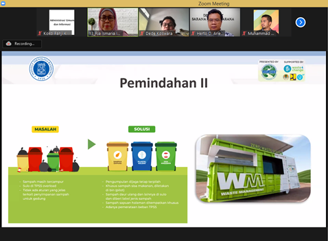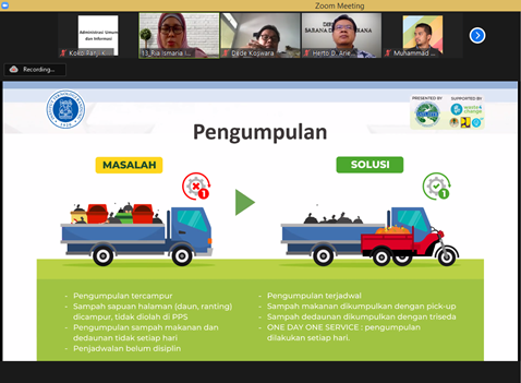 Based on the awareness that good waste management will support the participation of higher education in creating an eco-campus where 5 of the 6 parameters of waste management according to the UI Green Metric standard are waste management, the Environmental Engineering Alumni Association of the Bandung Institute of Technology (IATL ITB) conducted an in-depth study of ITB’s existing conditions and provides a proposal in the form of a Master Plan for the ITB Ganesha Campus Waste Management System to make the ITB campus perform well in environmental management, one of which is waste management.