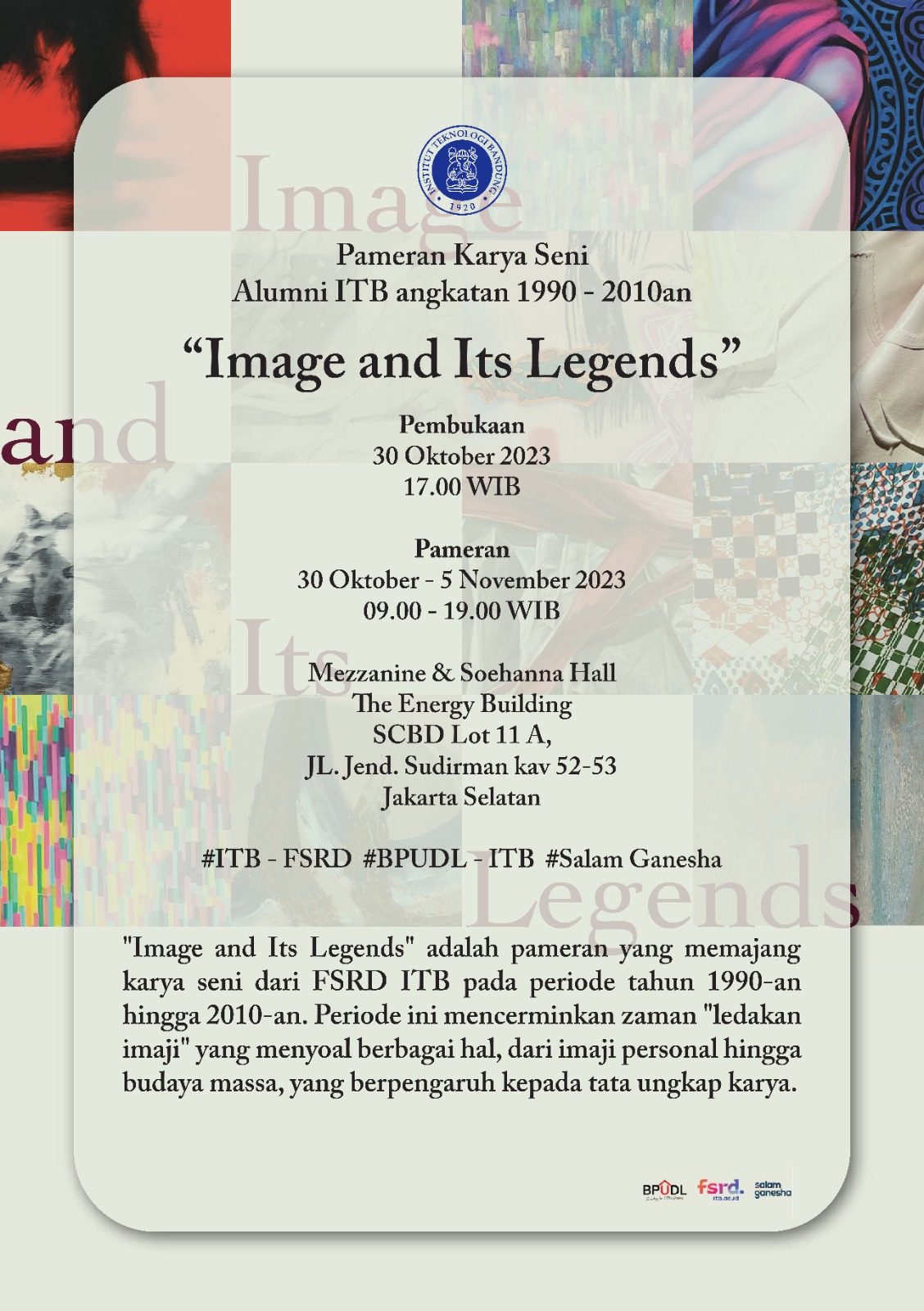 FSRD ITB, BPUDL dan Salam Ganesha menyelenggarakan Pameran Karya Seni Alumni ITB Angkatan 1990-2010an dengan tajuk: “Image and It’s Legends”.