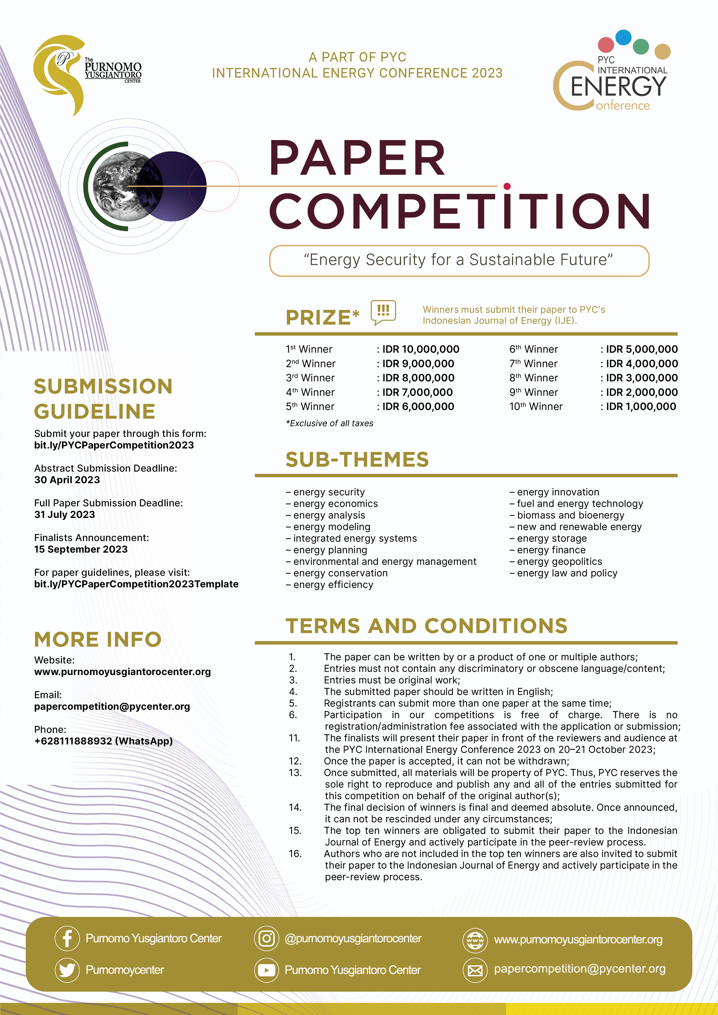 We will hold the “PYC Paper Competition 2023” as part of our biennial flagship program, PYC International Energy Conference 2023. Join now and stand a chance to win a total prize of IDR55,000,000!