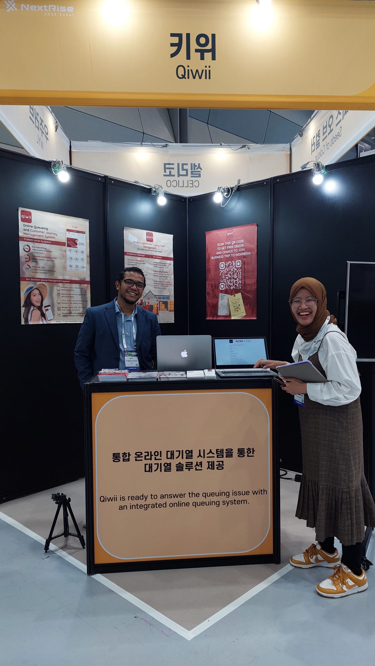 Seoul, 2 Juni 2023 – Qiwii, startup Indonesia yang mengembangkan aplikasi antrian online dan sistem manajemen logistik berpartisipasi dalam acara NextRise Seoul 2023 yang diadakan di Seoul, Korea Selatan. Acara yang diselenggarakan atas kerjasama Korea Development Bank dan Korea International Trade Association (KITA) ini berlangsung pada tangga 1-2 Juni 2023, dan dihadiri oleh lebih dari 450 startup dan lebih dari 13.000 corporate dan investor.