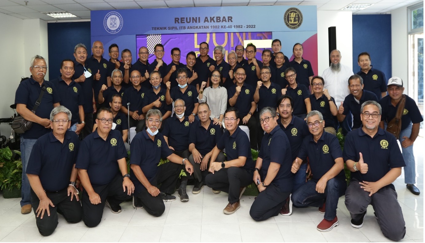 Pertemuan pada hari Sabtu, tanggal 29 Oktober 2022 di Gedung CIBE Ruang 101 dan Ruang 102, merupakan Reuni Akbar Jurusan Teknik Sipil ITB Angkatan 1982, adalah Reuni yang ke – 40 tahun dari semenjak masuk ITB 1982. Angkatan ini semula berjumlah 150 mahasiswa, ada 4 mahasiswa yang mengundurkan diri karena pindah jurusan ke informatika atau pindah ke universitas lainnya. Diantaranya juga tercatat 18 orang yang sudah meninggal dunia.