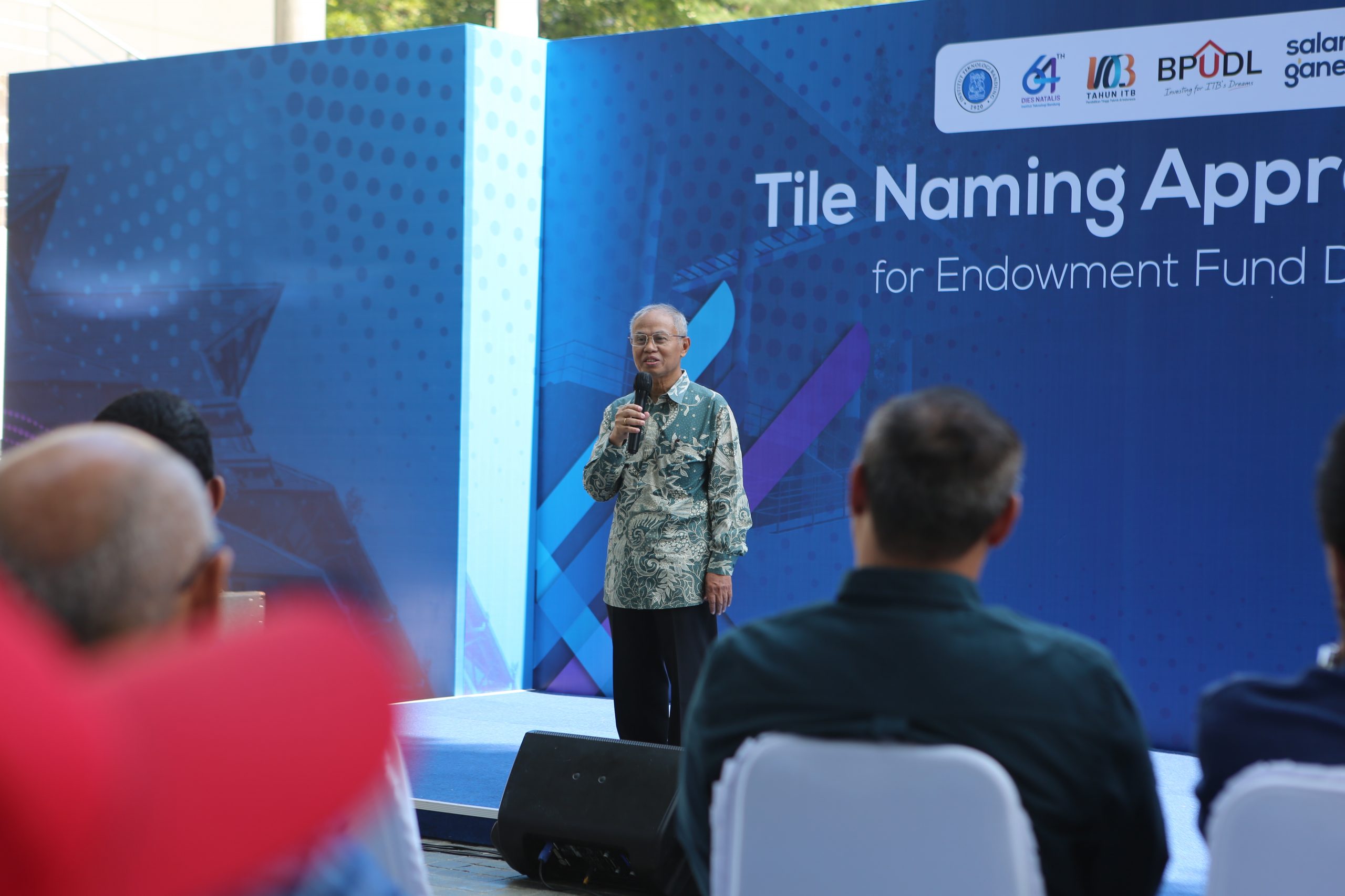 Acara ini dibuka dengan pemberian sambutan dari BPUDL ITB yang diwakili oleh Dr. Ahmad Faizal selaku Sekretaris BPUDL ITB. Beliau menyampaikan Tile Naming adalah bentuk apresiasi kepada alumni-alumni yang telah menyumbang untuk Dana Lestari ITB, dan ITB terus mencari bentuk apresiasi kepada para donatur karena dampaknya sangat besar untuk jangka panjang. “Atas prakarsa MWA juga pada awalnya yang dibantu oleh teman-teman Salam Ganesha, menggalang Dana Lestari sampai kemudian apresiasi Tile Naming ini terkumpul kurang lebih 9 Miliar sekitar 2,5 tahun dan akan terus kami lanjutkan programnya.”