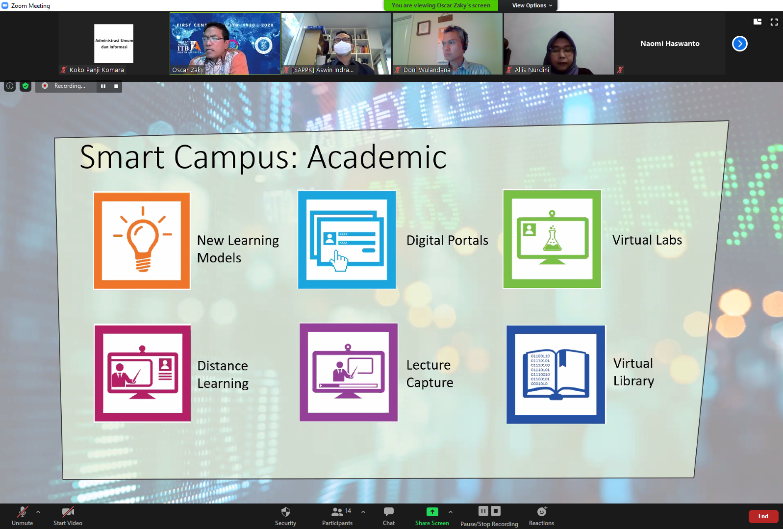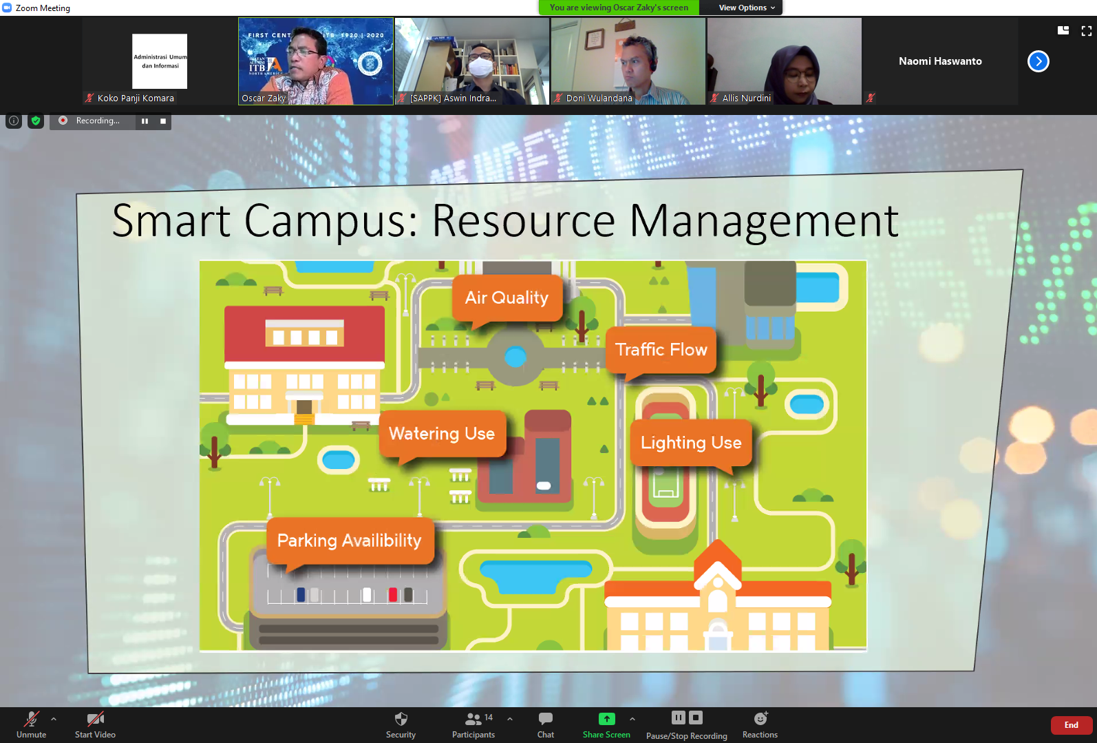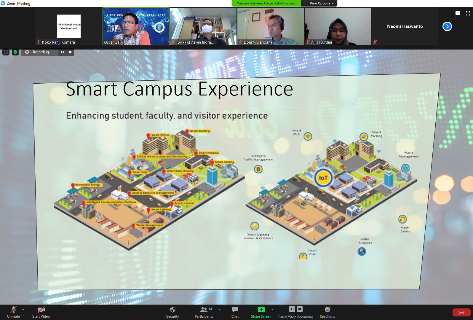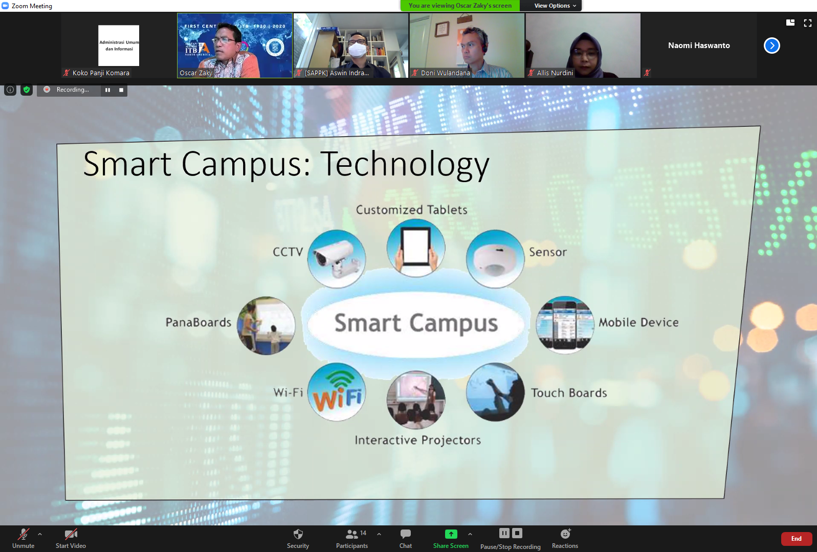 Oscar Zaky (SI 86), Doni Wulandana (SI 86), Rizki Arsiananta (AR 92), Haris Koentjoro (AR 90), Doddy Samiaji (AR 90) yang tergabung dalam Noble Smart, LLC, USA menawarkan konsep smart campus academic, technology, resource management, dan smart campus experience sbb: