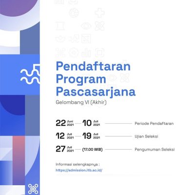 Pendaftaran Program Pascasarjana Gelombang VI (Akhir) Semester I 2021/2022 Periode Pendaftaran : 22 Juni – 10 Juli 2021 Ujian Seleksi : 12 – 19 Juli 2021 Pengumuman Seleksi : 27 Juli... Read More
