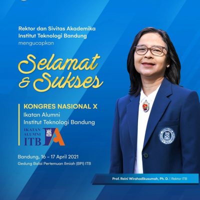 Rektor dan Sivitas Akademika ITB mengucapkan selamat dan sukses KONGRES NASIONAL X Ikatan Alumni ITB. Bandung, 16-17 April 2021 di Gedung Balai Pertemuan Ilmiah (BPI) ITB. #KongresX #iaitb #ikatanalumniITB