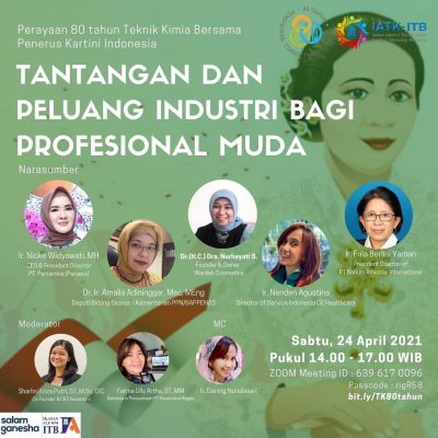 Dalam rangka memperingati Hari Kartini tahun 2021, Ikatan Alumni Teknik Kimia (IATK) ITB, pada hari Sabtu, 24 April 2021 menyelengarakan webinar dengan menampilkan para tokoh wanita yang berhasil membuktikan kemampuannya dalam memajukan... Read More