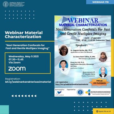 [WEBINAR ITB] Webinar Material Characterization “Next Generation Confocals for Fast and Gentle Mutlipex Imaging” Wednesday, May 5 2021 07.30—11.45 Via Zoom Registration: bit.ly/webinarkarakterisasimaterial