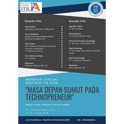 Webinar Virtual Edufair ITB 2020 “Masa Depan SUMUT Pada Technopreneur”
