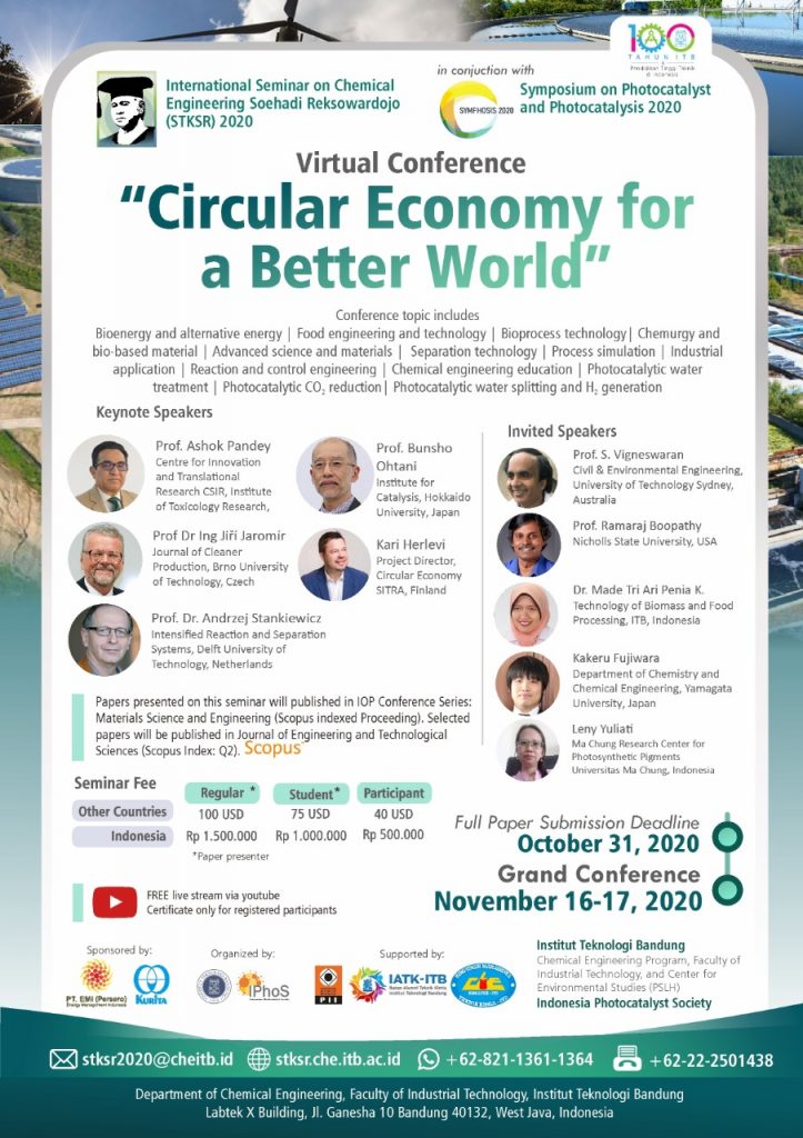 International Seminar on Chemical Engineering Soehadi Reksowardoyo (STKSR) 2020 in conjuction with Symposium on Photocatalyst and Photocatalysis (SYMPHOSIS) 2020